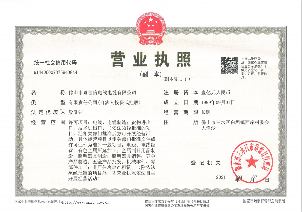 和小編來(lái)了解佛山市粵佳信電線(xiàn)電纜有限公司吧!