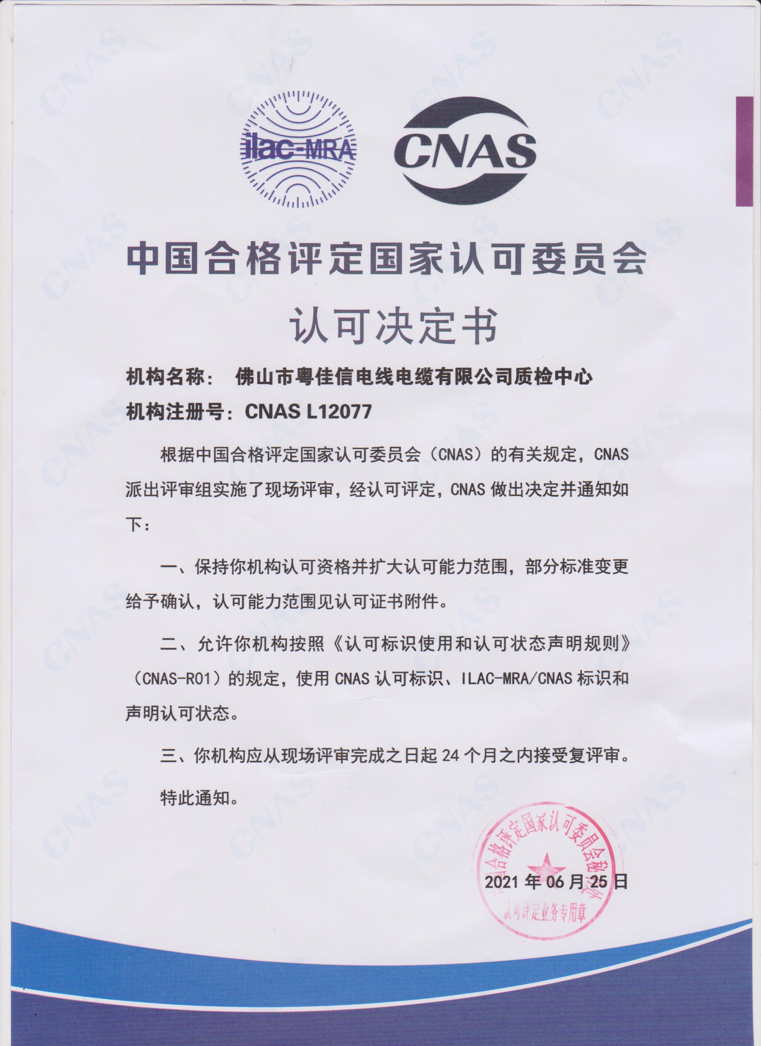 佛山市粵佳信電線(xiàn)電纜有限公司(禪誠(chéng)電纜)通過(guò)2021年國(guó)家監(jiān)督抽查檢驗(yàn),產(chǎn)品質(zhì)量合格。